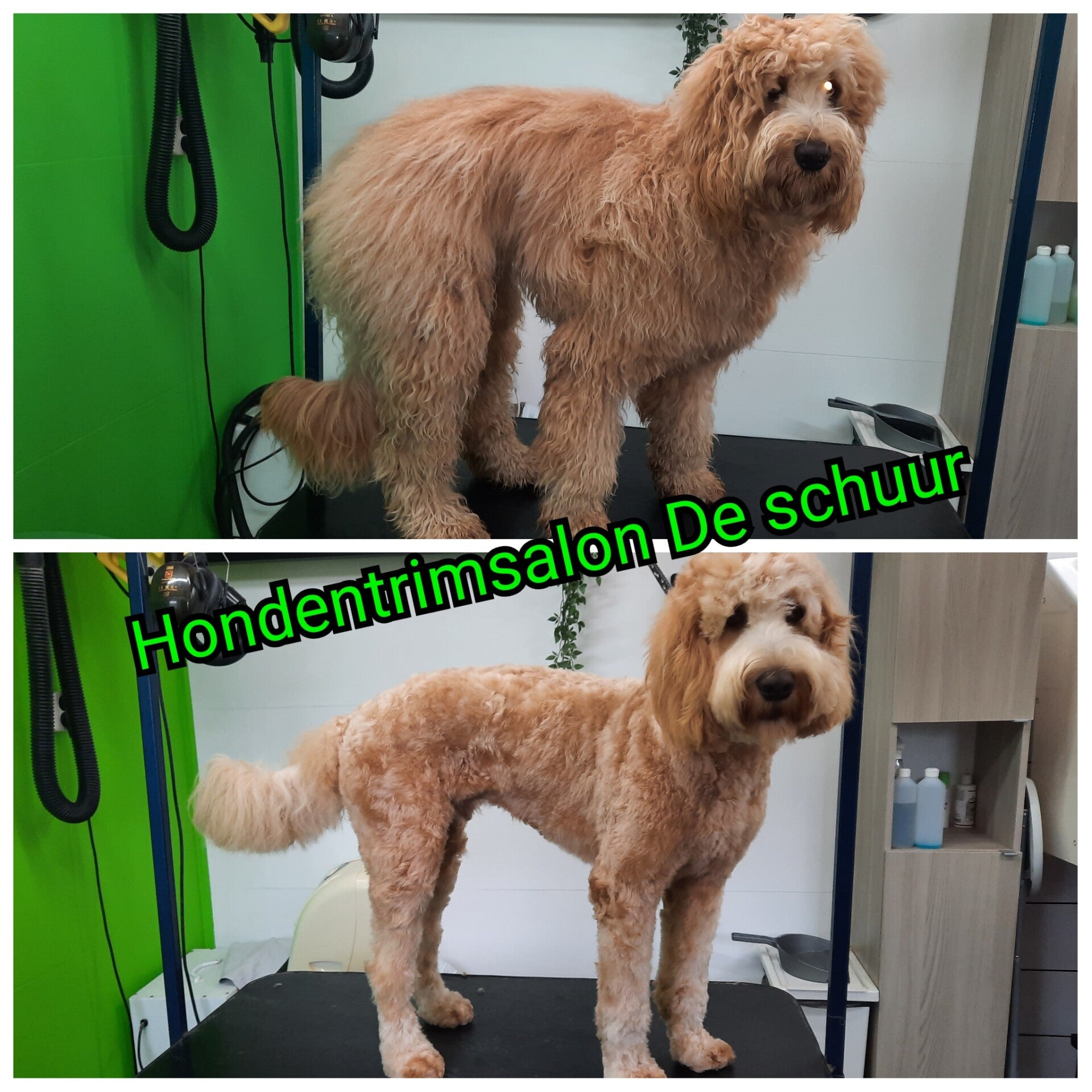 Wanneer de hond in het gewenste model is geschoren word de hond gewassen en daarna met een professionele föhn droog geblazen.